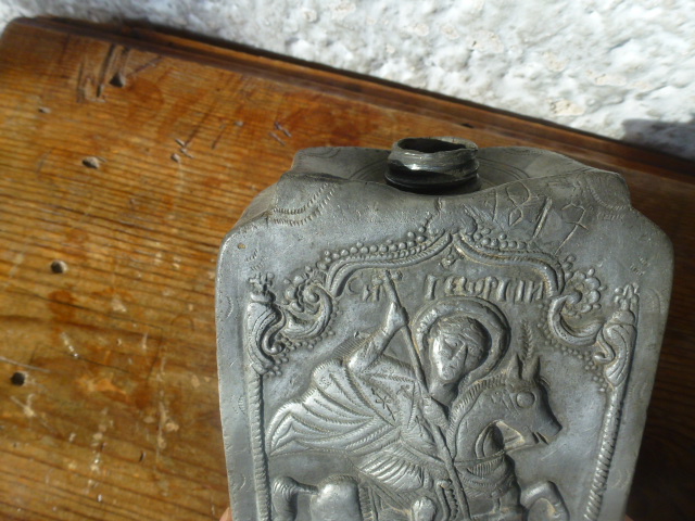 Фляжка наверное дорожная. Георгий он как бы покровитель путешественников.