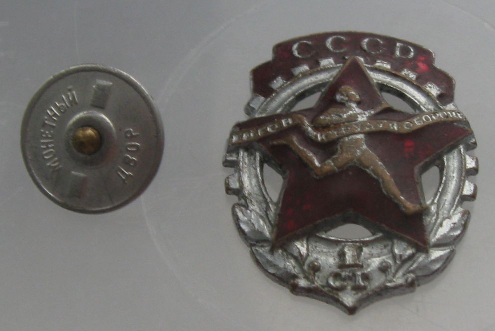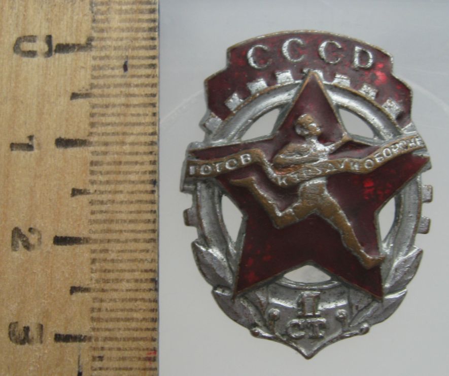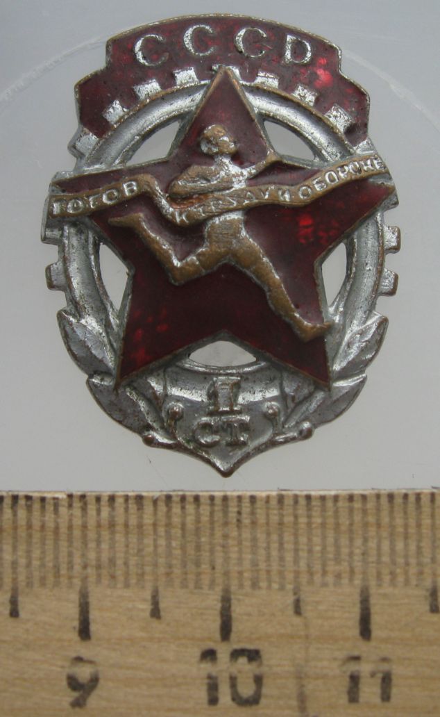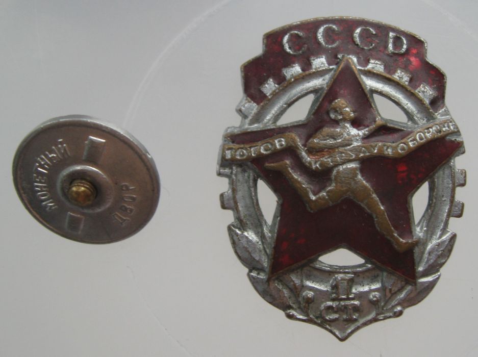 Знак ГТО образца 1940-46 гг.,в хорошем состоянии с винтом в среднем 1000 руб., в таком оценить затрудняюсь (знак довольно частый)...
