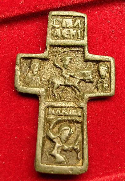 PLUTONIUM, спасибо! Возник тут у меня вопрос к спецам: как я понимаю оборотная сторона данного креста была затерта еще при жизни последнего владельца носившего данный крест или нет? Если этот крест датируют 15-16 веком, то почему оборотка затерта как у крестов после Никоноского раскола, когда уже на готовых крестах(например с Никитой-бесогоном) затирали Федора Стратилата и Архангела Михаила? Прошу сильно тапками не кидать, а дать , по возможности, развернутый ответ.