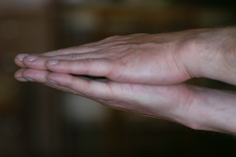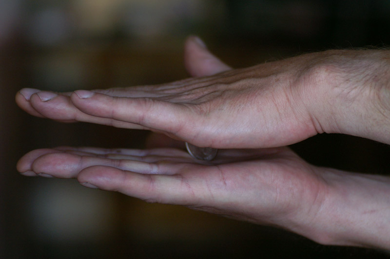 Одна ладонь была снизу, другая сверху. Угадывающий говорил - орел или решка.