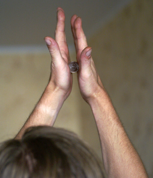 Верхняя ладонь поднималась, открывая монету, лежащую на нижней руке. Если противник угадывал, то забирал 5 копеек из банка и получал право крутить сам. Если не угадывал, то метчик забирал 5коп. и продолжал крутить. Проиграв таким образом несколько рублей, я уже стал отказываться от игры. Тогда мой товарищ открыл мне поразительный секрет. Оказывается, ловил он монету почти всегда на ребро. Достигалось это некоторой тренировкой и четкой техникой: зажимать вращающуюся монету следует строго по оси вращения двумя ладонями с двух сторон. Но еще более удивительным было то, что он точно знал, с какой стороны находится орел, а с какой - решка. Потренировавшись, я понял, что это действительно возможно. В момент вращения и ловли монеты необходимо внимательно смотреть на нее. Через некоторое время тренировок я действительно стал понимать, где у стоящей на ребре монеты орел, а где решка. Дальше, думаю, все понятно. Если противник говорил «орел», я легким движением верхней ладони укладывал монету решкой вверх. Сообщение отредактировано Печкин: Aug 12 2011, 21:42 -------------------- Куплю рыболовные крючки, блесна и пр. старше 100 лет