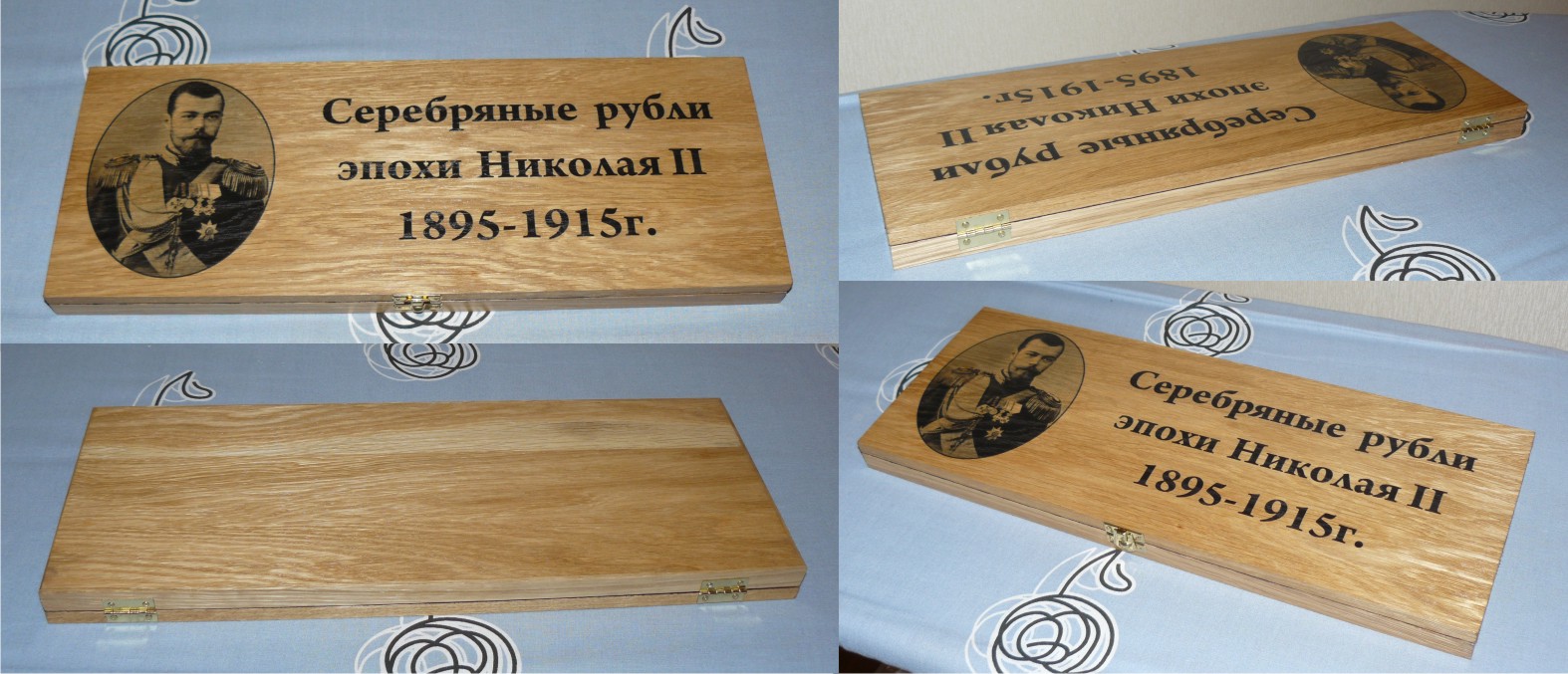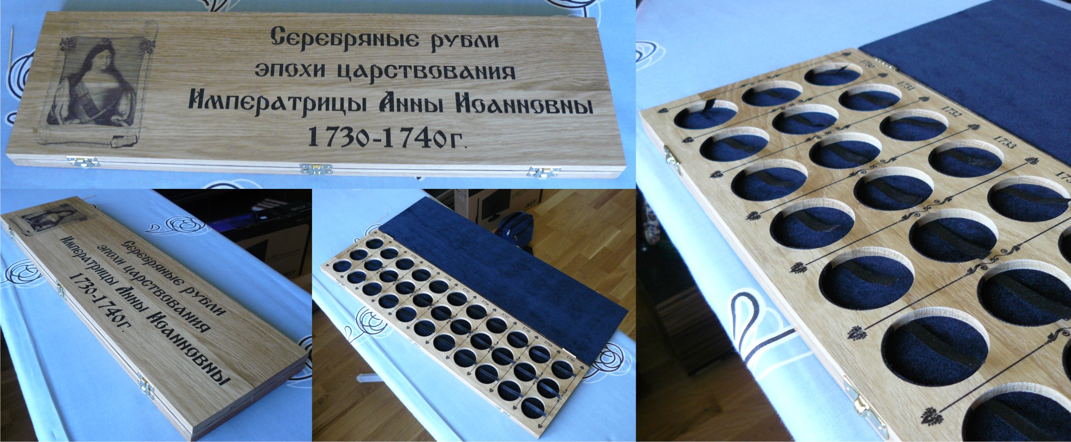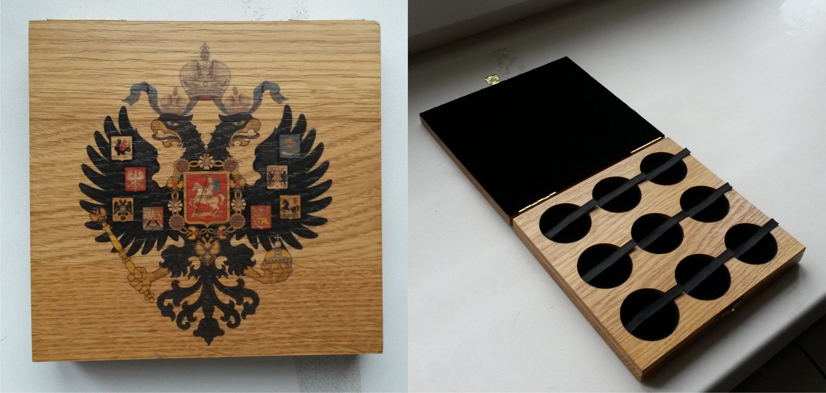 Принимаются заказы на изготовление футляров для монет из дуба. Материал: массив дуба, бархат, качественная фурнитура. На фото представлен пример футляра. Стоимость данного футляра – 4 000 руб. Размер представленного футляра 46х17,5 см. Футляр на 30 ячеек под рубли Николая 2. Фото представлено в качестве примера. Изображение на крышке, размеры ячеек, их количество, а так же подписи к ячейкам могут быть любыми. Процедура заказа: 1. Вы пишите мне, какое требуется количество ячеек, подписи к ним, диаметр ячеек, желаемое изображение на крышке (надпись на крышке). 2. На основании полученных данных я делаю макет футляра, а так же говорю стоимость вашего футляра. 3. Вы смотрите макет, вносите изменения. 4. Вы оплачиваете стоимость футляра. 5. Когда макет согласован и прошла оплата я приступаю к работе 6. По завершению работы я высылаю фото готового футляра. 7. Я отправляю футляр и высылаю скан чека, на основании него вы оплачиваете почтовые расходы. Срок изготовления футляра 3-4 недели с момента поступления денег. Любые вопросы можно задавать в теме или в личку. Первым 20 заказчикам скидка 10 %. Сообщение отредактировано Kazah: May 22 2012, 11:27 Вложенные эскизы изображений |