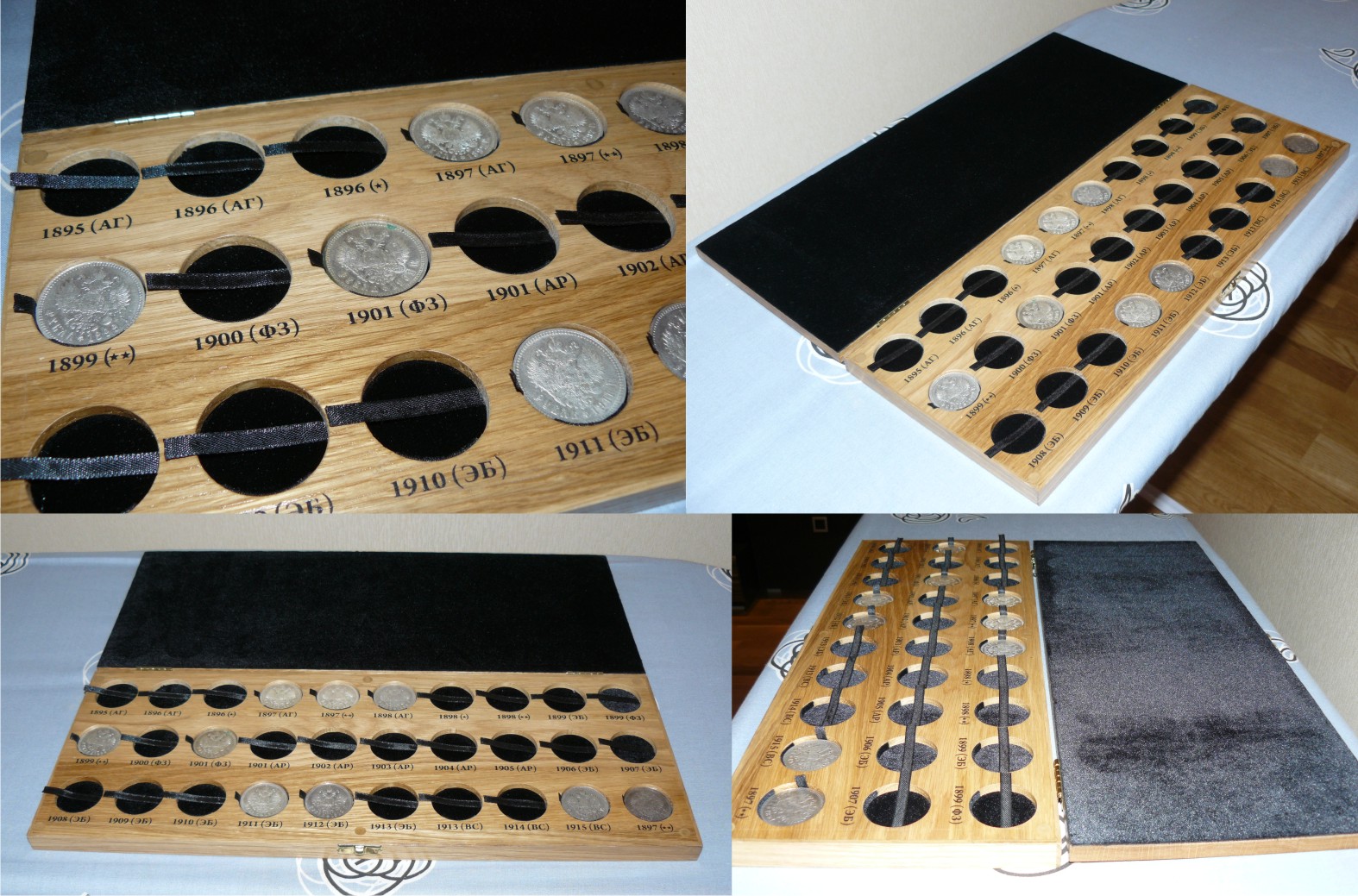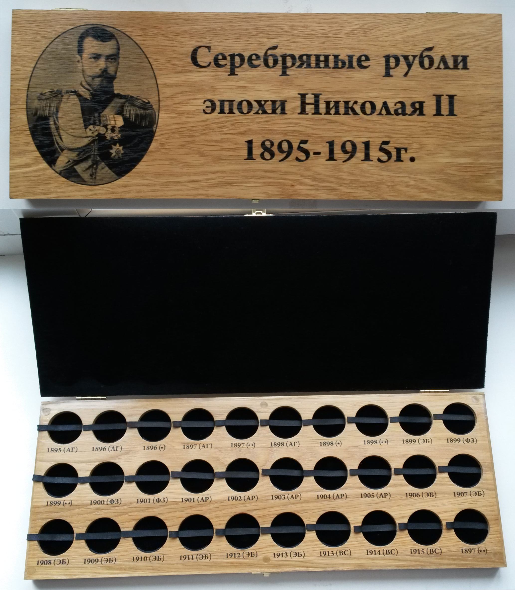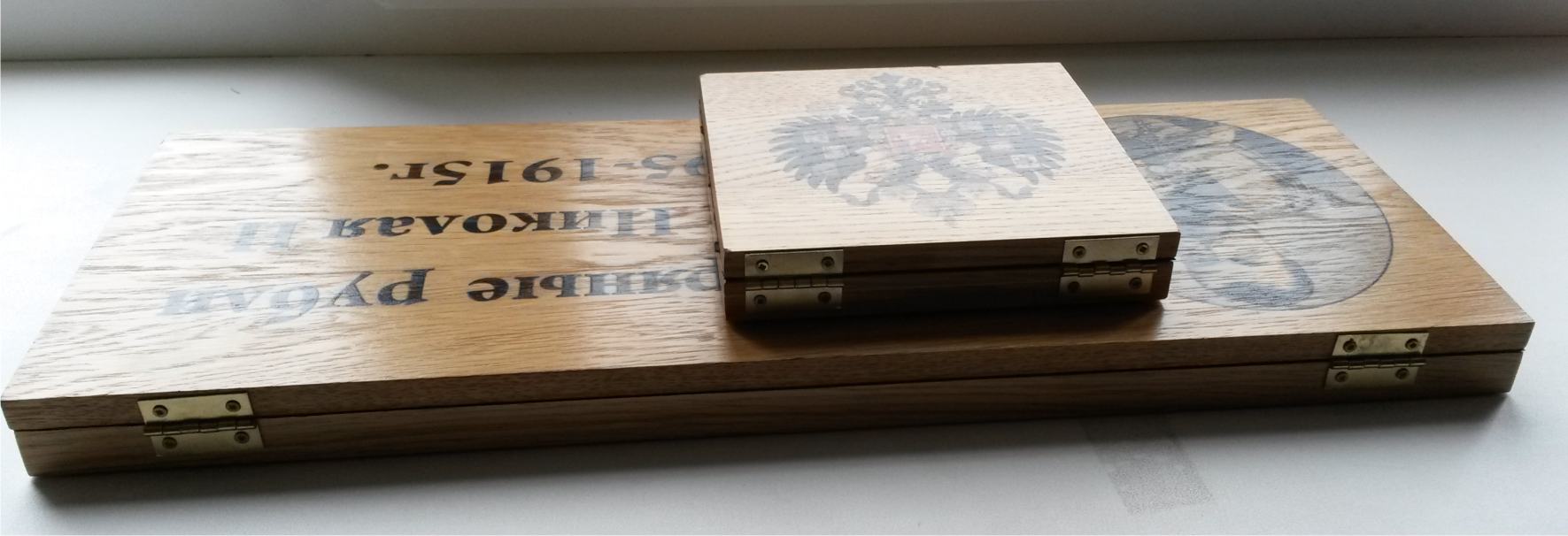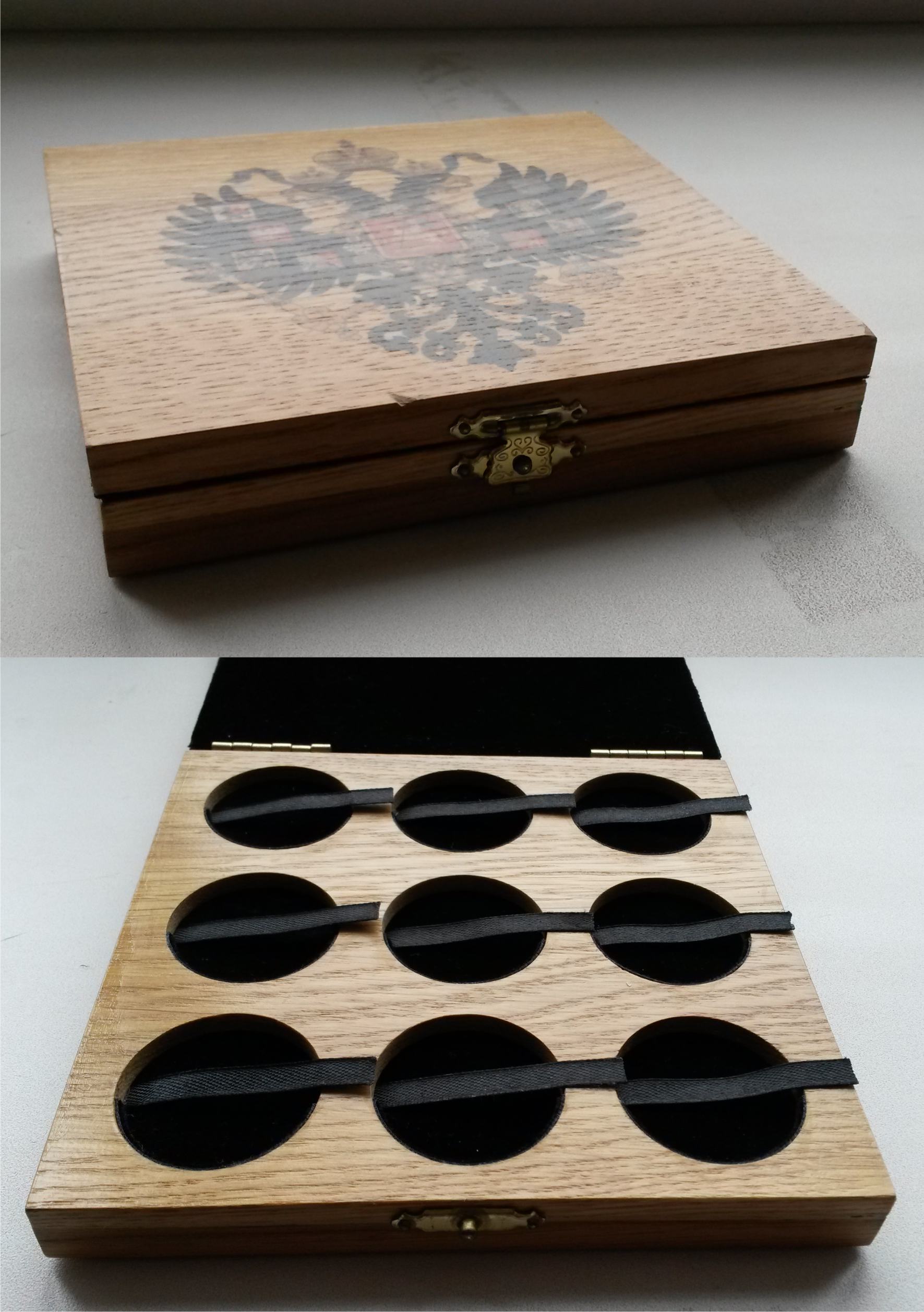 Принимаются заказы на изготовление футляров для монет из дуба. Материал: массив дуба, бархат, качественная фурнитура. На фото представлен пример футляра. Стоимость данного футляра – 4 000 руб. Размер представленного футляра 46х17,5 см. Футляр на 30 ячеек под рубли Николая 2. Фото представлено в качестве примера. Изображение на крышке, размеры ячеек, их количество, а так же подписи к ячейкам могут быть любыми. Процедура заказа: 1. Вы пишите мне, какое требуется количество ячеек, подписи к ним, диаметр ячеек, желаемое изображение на крышке (надпись на крышке). 2. На основании полученных данных я делаю макет футляра, а так же говорю стоимость вашего футляра. 3. Вы смотрите макет, вносите изменения. 4. Вы оплачиваете стоимость футляра. 5. Когда макет согласован и прошла оплата я приступаю к работе 6. По завершению работы я высылаю фото готового футляра. 7. Я отправляю футляр и высылаю скан чека, на основании него вы оплачиваете почтовые расходы. Срок изготовления футляра 3-4 недели с момента поступления денег. Любые вопросы можно задавать в теме или в личку. Первым 20 заказчикам скидка 10 %. Сообщение отредактировано Kazah: May 22 2012, 11:27 Вложенные эскизы изображений |