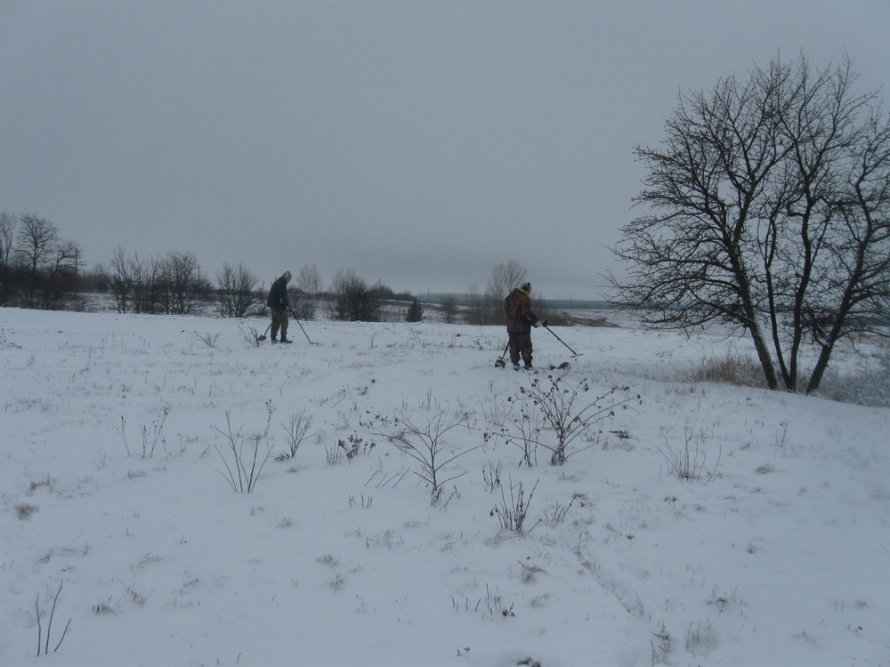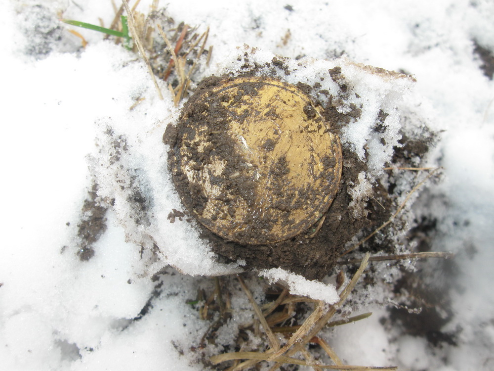 сегодня тоже не удержался на покопушки поехали с братиком, ну в общем подготовились основательно пол литра сугревающей жидкости, термос чая, пару сникерсов и вперед. погодка на удивление порадовала снежок был, но не напрягающий, 0 +1, в итоге хотели покопать по старине а поперла военщина, гильзы от мосинки, пару пуль дикого диаметра и длины(длина см ~12 толщина не меньше 1 см), но потом и до старины доходились всякий шмурдяк медный хозяйственный, из монет советы 60-х, не ахти находки но всё же, завтра поедем хату казачью копать