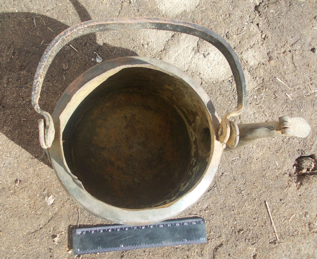 По идее каждый штатный армейский предмет должен иметь приемку. Если уж все котелки и фляги проштампованы, то чайник и подавно. Но видимо подавляющее большинство чайников выпускалось артелями без права клеймения. Либо чайник закупался служивыми самостоятельно, на свое усмотрение (не исключено, что как предмет роскоши, так как были полковые котлы) Полковые котлы клеймились в большинстве случаев. Кто-нибудь сможет показать клейменный чайник или сказать, каким предприятием он выпускался? |
