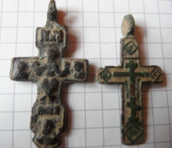 Поднял сегодня крест,не смог найти подобного.Помогите пожалуйста в определении и возможной цене.Который слева,ну и второй,вроде 18век.