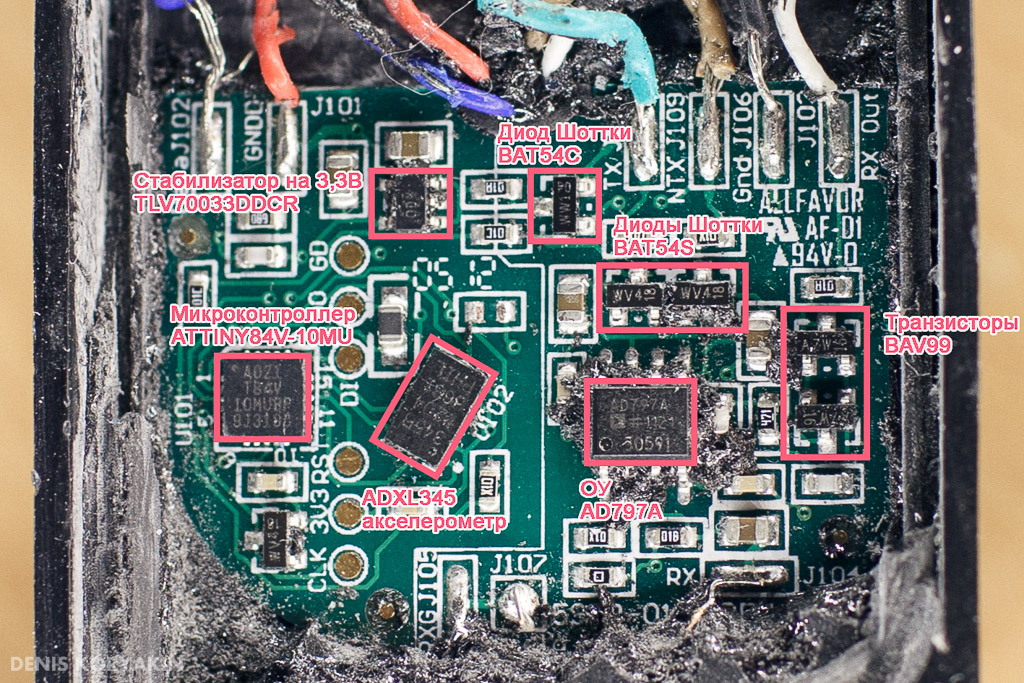 QUOTE(Denis_K @ May 26 2017, 22:19) Решил немного поделиться опытом по выявлению неисправности в катушке CTX17. Симптомы следующие: При питании от аккумулятора после включения прибора, он начинает глючить, экран мигает, подвисает и т.п., после чего обычно выключается. При питании от батареек выключался почти сразу. Как выяснилось, подключенная катушка "Садила" питание прибора на столько, что он начинал "сходить с ума". При подключении другой катушки, прибор работал исправно. Мы конечно же решили вскрыть катушку для выяснения причины столь аппетитного потребления электроэнергии. Проблема оказалась в "пробитом" диоде шоттки ww1 (BAT54C). Питание берется с линии TX и проходит через данный элемент на стабилизатор. Более подробное изображение внутренностей на фото. Как видно, что кстати меня удивило, в катушке применен акселерометр ADXL345. Так же, в схеме применен микроконтроллер малой мощности ATTINY84V-10MU, который служит для управления акселерометром и передачей данных в прибор. В том числе серийный номер катушки и т.п.. Такая же проблема с катушкой17 где и как ее отремонтировать? Если самому вскрывать то как вскрывается катушка. опишите техпроцесс. С уважением, |
