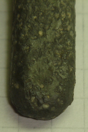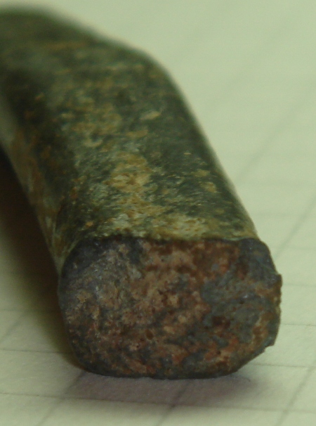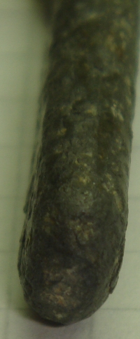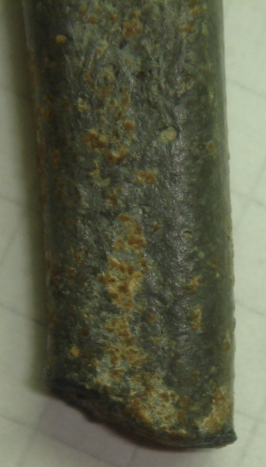 Металл- серебро; вес около 33,7 грамма; длина- 59мм; ширина- 10мм; толщина- 5мм сильная коррозия. С обеих сторон, что-то похожее на шов, видно на фото. Прошу подсказать есть ли это то, от чего у меня поднялось бы настроение? Или это что-то загадочное и для всех... Прошу всех высказываться, интересуют любые мнения. Спасибо! |