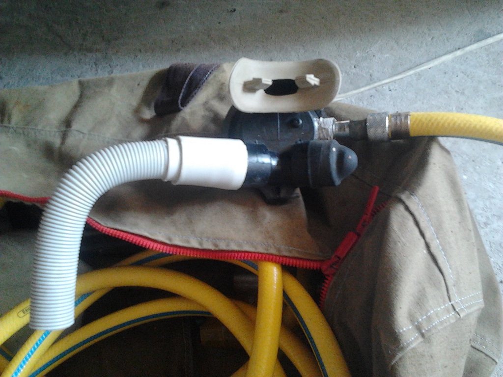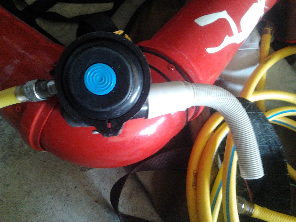 Привет всем.Хочу поделится маленькой доработкой.Незнаю как у кого но у меня была проблема при опускании головы вниз,начинал активнать пузырить легочник и дышать становилось проблемно.Решыл эту проблему просто,на один из клапанов одел изогнутый феном кусок шланга от стиралки,второй закрыл пробкой.