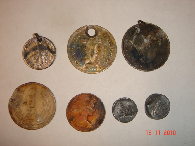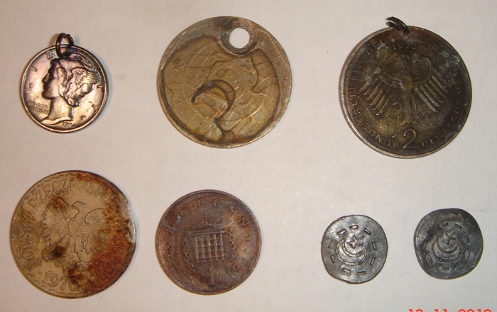 Копая местные пляжи в Подмосковье периодически попадаются такие монеты,варварски испорченные чьими то шаловливыми ручонками.Неужели больше нечего носить было на цепочках(не думаю что в ушах-ибо тяжелые),что бы так изуродовать монеты.Я в шоке!