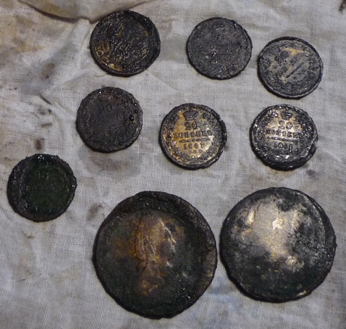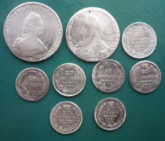 Вы не поверите!Прислушавшись к совету org,(ему за это огромный +),я купил в аптеке вазелиновое масло,и в обед отвез к отцу масло и монеты,говорю ребята посоветовали их сварить,а нагреть их мы всегда успеем,а варка в масле более щадящий способ,отдал ему их и уехал.Недавно звонит мне и говорит,монеты серебряные,вези лимонную кислоту,а то у меня кончилась.Еду в магазин,а сам думаю ну не могут быть они серебряные,наверное он меня разводит - хочет надо мной поприкалываться.Отдаю ему лимонную кислоту,и привез еще каталог Я.Андрианова,фотик,смотрю он на полном серьезе достает монеты,их оказалось девять....