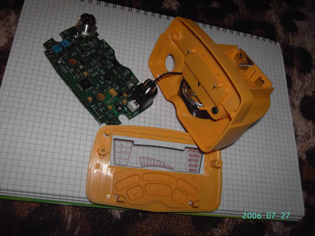 QUOTE(GSL @ Jun 2 2008, 10:39) Вот по этой ссылке есть схема АСЕ 250 Если вместо резистора R56 100кОм поставить переменник и последовательно резистор 10 кОм , то будет регулятор громкости. Реализовал этот способ регулировки громкости на своей аське. Долго искал куда бы поставить переменный резистор, в итоге нашел место, как оказалось не совсем удачное. На это место претендовала одна из защелок платы к лицевой части корпуса. Заметил это я уже когда все собрал, поэтому чтоб ничего не переделывать, защелку откусил, а на резистор приклеел кусочек полукруглой резинки, чтоб она плату приживала. Вот как всё происходило: Следал отверстие под резистор ![]() Примерил его ![]() Далее переходим к плате, выпаивыем резистор R56 Он еще есть ![]() Его уже нет ![]() Припаиваем провода для переменника (мы делаем замену одного штатного резистора на 100ком, на переменный 100ком и постоянный 10ком включенные последовательно) ![]() Получилось как-то так ![]() Устанавливаем всё назад ![]() И у нас готовый прибор ![]() Удобно крутить той же рукой, которая держит прибор ![]() Я заметил мещающуюся защелку только уже на конечной стадии сборки.. Пришлось ей пожертвовать, или нужен более компактный переменник, но в моем близлежащем магазине на 100ком ничего маленького не было. Также я использовал резистор на 4,7 кОм, так звук стал еще тише. После этих манипуляций аська осталась в рабочем состоянии |