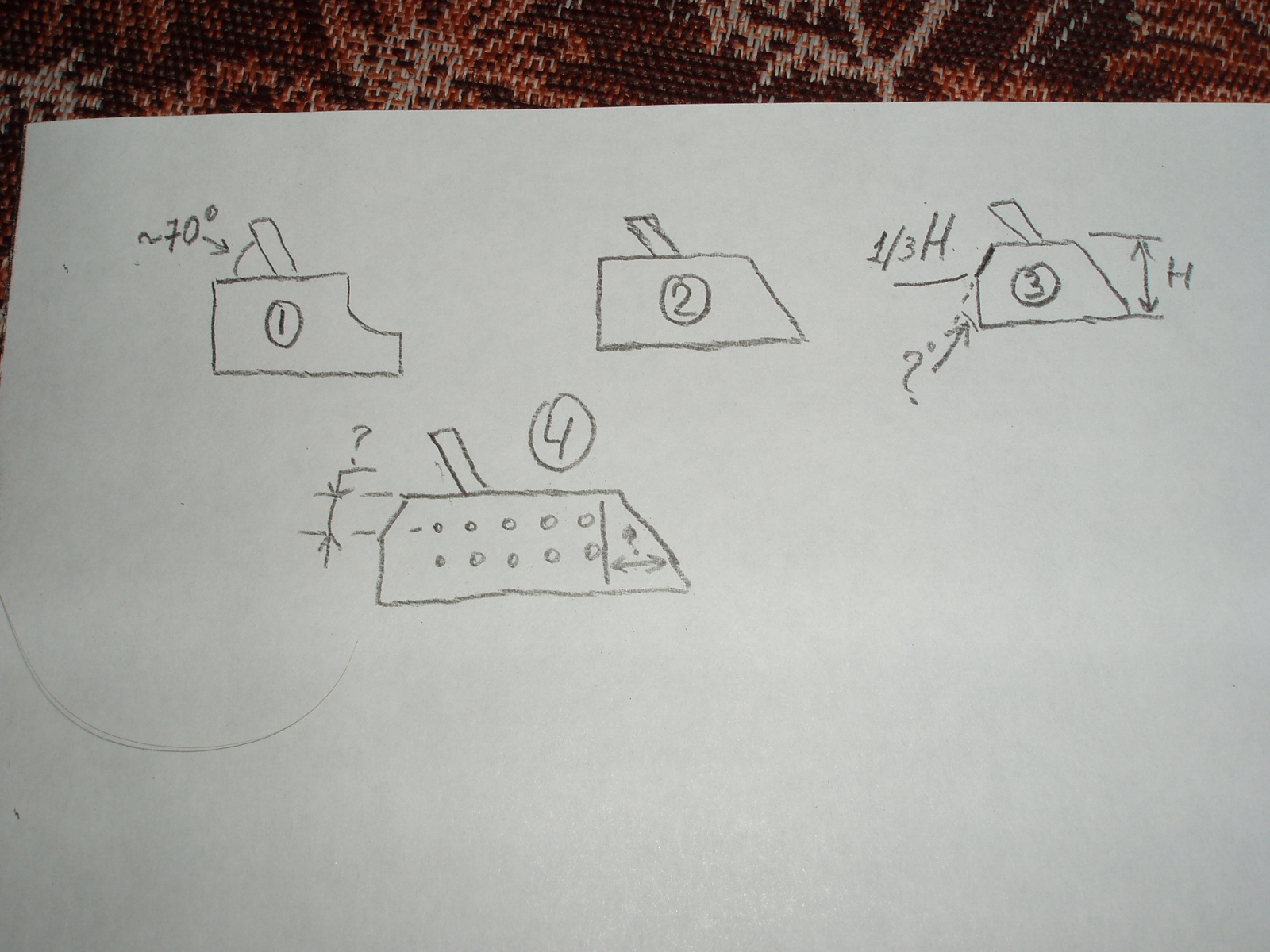 Отверстия от 7 до 9 мм, какие выбрать? какая форма предпочтительнее на рисунке 1 или 2? про какой наклон говорится под углом под 70 градусов на одну треть от высоты для удобства копания,что на рисунке 3? если центры отверстий разместить квадратно-гнездовым методом, то на каком расстоянии друг от друга, для сохранения прочности? какое расстояние делать от носика режущей кромки до сетки отверстий рис4? Какое расстояние от верхней части, где крепится ручка до отверстий, дабы сохранить приемлемую жёсткость? рис4 Заточу с какой строны делать с внутренней или внешней? Если кого утомил, то простите комрады, но я считаю, что это ключевые вопросы при сложности достать данный материал для изготовления С уважением. Сообщение отредактировано Саша Южный: Feb 21 2012, 23:51 Вложенные эскизы изображений |