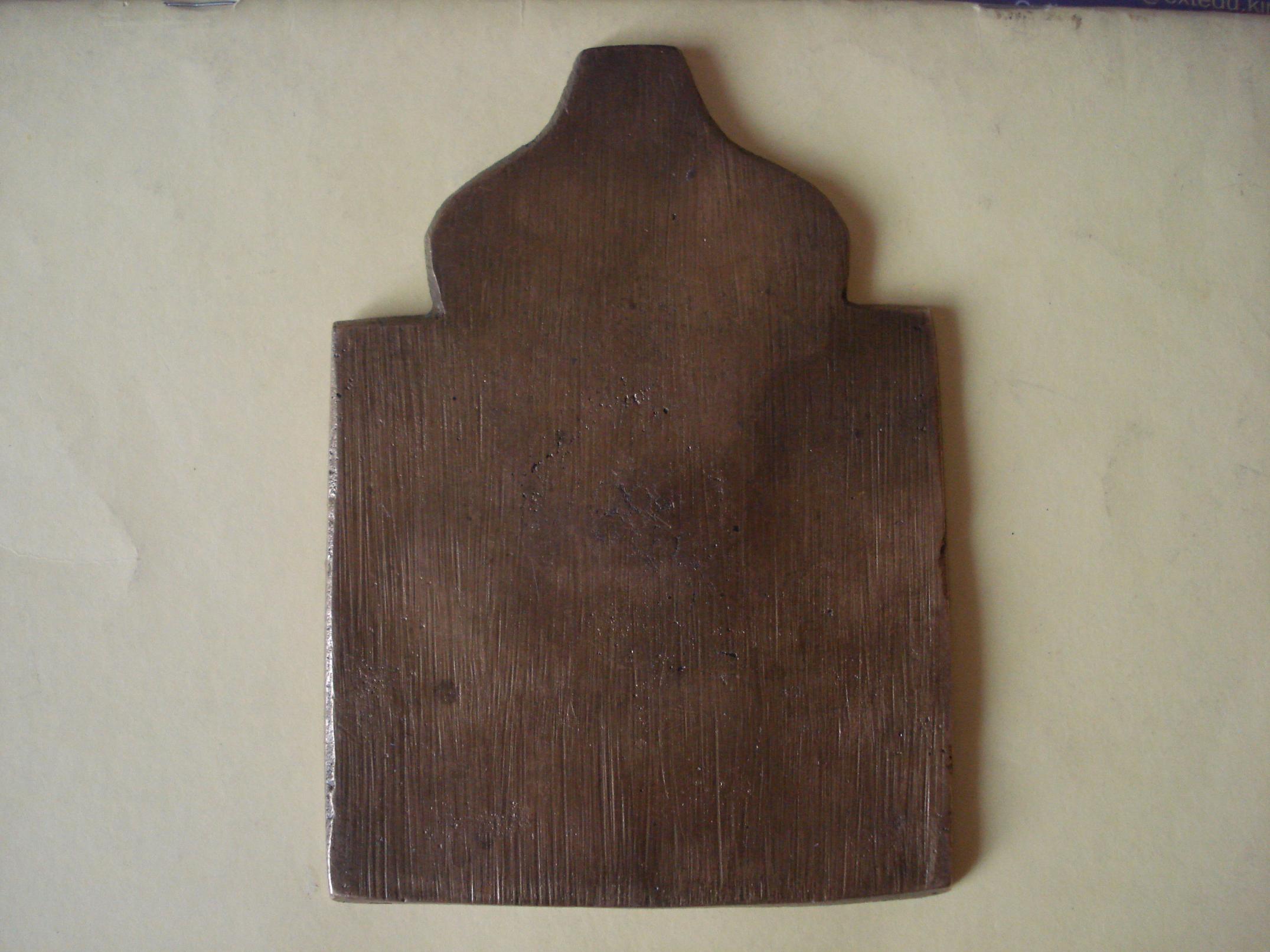 Это икона, моделью для отливки которой послужил средник складня. Есть аналоги с Николой Можайским, Богоматерью Страстной и др.