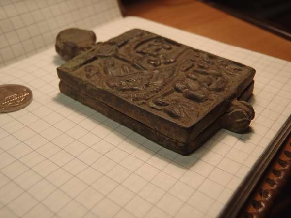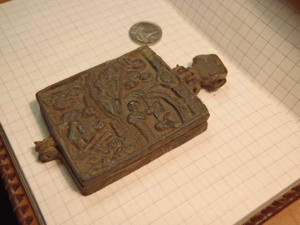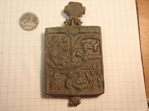Фотографии (обрезав всё лишнее) залейте на http://savepic.net, скопируйте оттуда вторую сверху ссылку. Укажите размеры. Откройте топик в "Металлопластике" с нормальными фотками, с размерами и, желательно, с указанием региона находки. Ну, Вы ж не новичок, верно, сами могли бы то же самое сделать... А по цене - если почтеннейшая публика решит, что оглавие родное - ставьте на аук с 20, будет интересно. -------------------- Лучше обнаружить в яблоке червяка, чем его половину...