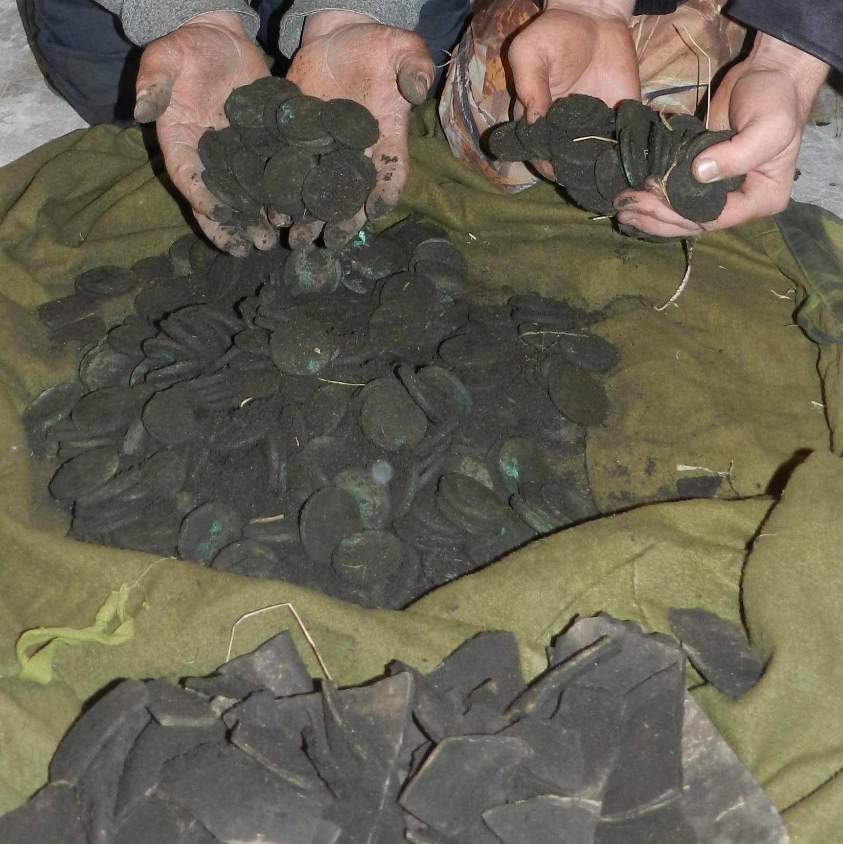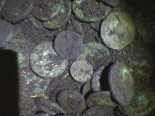 23 числа позвонил мне товарищ, вечером собрались и поехал на коп. Место выбрали заранее "урочище", где когда-то существовало большое село с церковью. После двух часов хождения в поисках монет и другой старины- поймал сигнал. Вообщем один сигнал- одна цель. В это время подошел товарищ. Горшок оказался не распаханным на глубине чуть больше штыка лопаты (около 40 см.), но, однако, не прикрытый и от времени все же потрескался. Общий итог: 353 пятака, 50- двушек, 25- копеек, правления Елизаветы и Екатерины 2 (с 1757 по 1791 включительно). Присутствуют разные монетные дворы, но в небольших количествах.