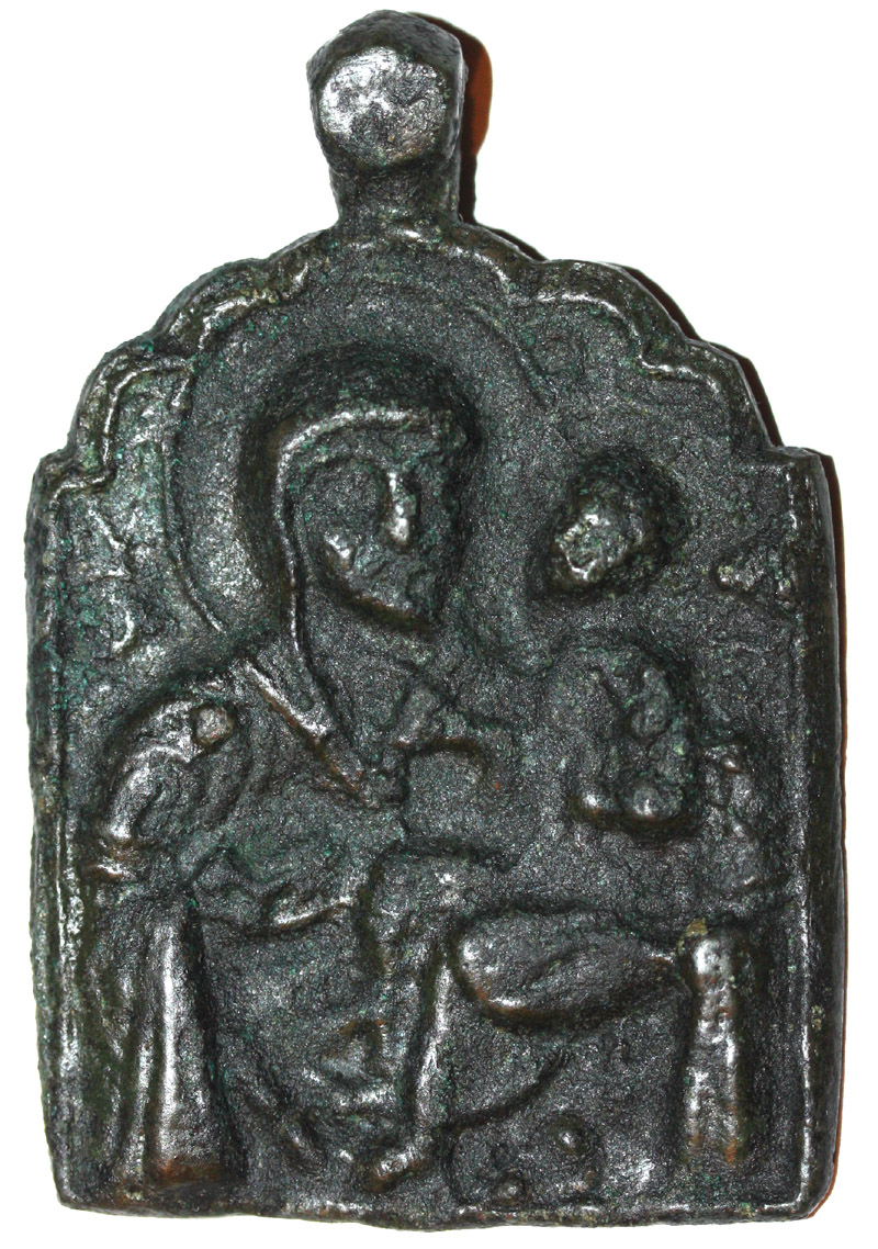 В разделе находки я о ней уже написал. Добавлю, что известна иконка-змеевик с изображением Богоматери и младенца, имеющая аналогичную форму и размеры.