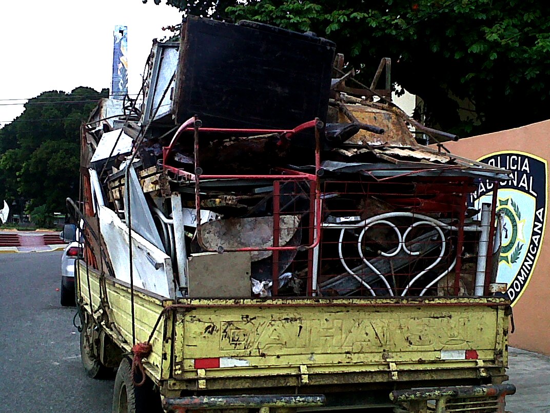 Цены: тонна железа RD$4000, меди RD$65000 и бронзы RD$40000. Курс RD$41=1$ США Вес металл собирается быстро и оперативно, рабочие мусоровозов складывают его отдельно от другого мусора, сами сдают - сами зарабатывают. Предприимчивые доминиканцы собирают любой металл: Сообщение отредактировано Francuz: May 11 2013, 20:00 |