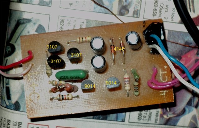 QUOTE(R0MAN @ Mar 20 2014, 23:02) Собрал автогенератор по схеме Вайтса. Запитал 9 вольт - типа "Крона". В контуре ёмкость 10 наноФарад Показания не очень стабильны - показания частоты на Rx скачет (пульсирует) от 11,94 до 12, 00 кГц при R=37,5 Ом на Тх скачет от 45,7 до 46, 00 кГц при R=2,3 Ом При этом замеры сделал на двух штатных катушках - примерно всё в этих пределах. Если считаю по этим показаниям катушку при диаметре катушки 365 мм (знаю, что там провод на Rx должен быть диаметр 0,22 - около 70 витков, а на Тх - диаметр 0,5 - около 30 витков), не получаются эти показания и близко по калькулятору... В чем может быть проблема? По питанию не должно быть проблем - батарейка... В схеме ещё поставил транзистор КТ3102БМ (просто с буквой Б не нашёл). Может частота так пульсировать, или показания должны быть жёстко стабильными?! Во время измерения частоты генерации: 1. Рядом катушкой не должно быть никаких металлических предметов в радиусе 1м. Иначе частота "прыгает". 2. Питание генератора должно быть стабильным. В вашем случае крона может "посесть" т.к. ток довольно большой крона просто не может дать такого тока из-за внутреннего сопротивления, поэтому желательно использовать блок питания с током на 500 ма. Это тоже в ветке обсуждалось. В принципе ваших данных достаточно чтобы пересчитать катушку на нужный размер. Все равно после расчета нужно мотать чуть больше витков и отматывать добиваясь нужных результатов. Так что можете мотать новую катушку. |