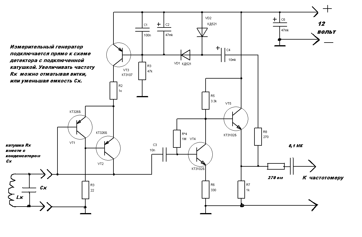 QUOTE(GSL @ Feb 24 2014, 09:23) Резистор подстроечный (можно 25 или 50 кОм ) и пара емкостей (обязательно пленочных) и получите вторую частоту. В простейшем случае достаточно только емкость. Резистор нужен для подстройки дискрима. При заливке частота не уходит если не менять "геометрию" катушки, но меняется баланс и иногда значительно, поэтому заливают в 2-3 этапа. Не забываем оставить настроечную петлю, которой в после полной залики подстраиваем баланс катушки. Графит лухше разводить на лаке, но проще на ПВА. Недостаток ПВА он впитывает воду - нужно принимать меры после нанесения экрана. На самом деле это дело вкуса. Многие делают на ПВА, потом слой стеклоткани ,затем лака и получается отлично. Доброго времени суток! GSL, сборка резисторов которая показана на схеме, это есть: – переменный резистор (действующий), то беж который есть в приборе как «дискрим»; - добавочный (постоянный) резистор устанавливается для подстройки шкалы дискрима при переходе на другую рабочую частоту. Я правильно понял? И еще один вопросик. А что делать с автогенератором Тх? Вернее будет, как делать? Если я не ошибаюсь, схема выходного каскада такая. Вложенные эскизы изображений |