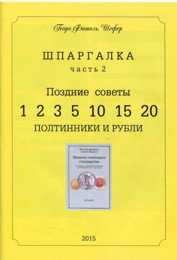 Шпаргалка из двух частей: 1-я "Ранние Советы. 2-я "Поздние Советы, полтинники, рубли ![]() ![]() ![]() ![]() Подробнее смотрите http://www.reviewdetector.ru/index.php?showtopic=887699 ПРАЙС ЛИСТ Шпаргалка - обе части - 1 экз. - 400 р. включая почтовые расходы. - 2 экз. – 750 р. включая почтовые. - 3 экз - 1000 р. - 5 экз - 1500 - 10 экз - 2500 Сообщение отредактировано Шефер: May 19 2015, 10:06 -------------------- Рассылка шпаргалки по каталогам Адрианова "Монеты Советского государства".