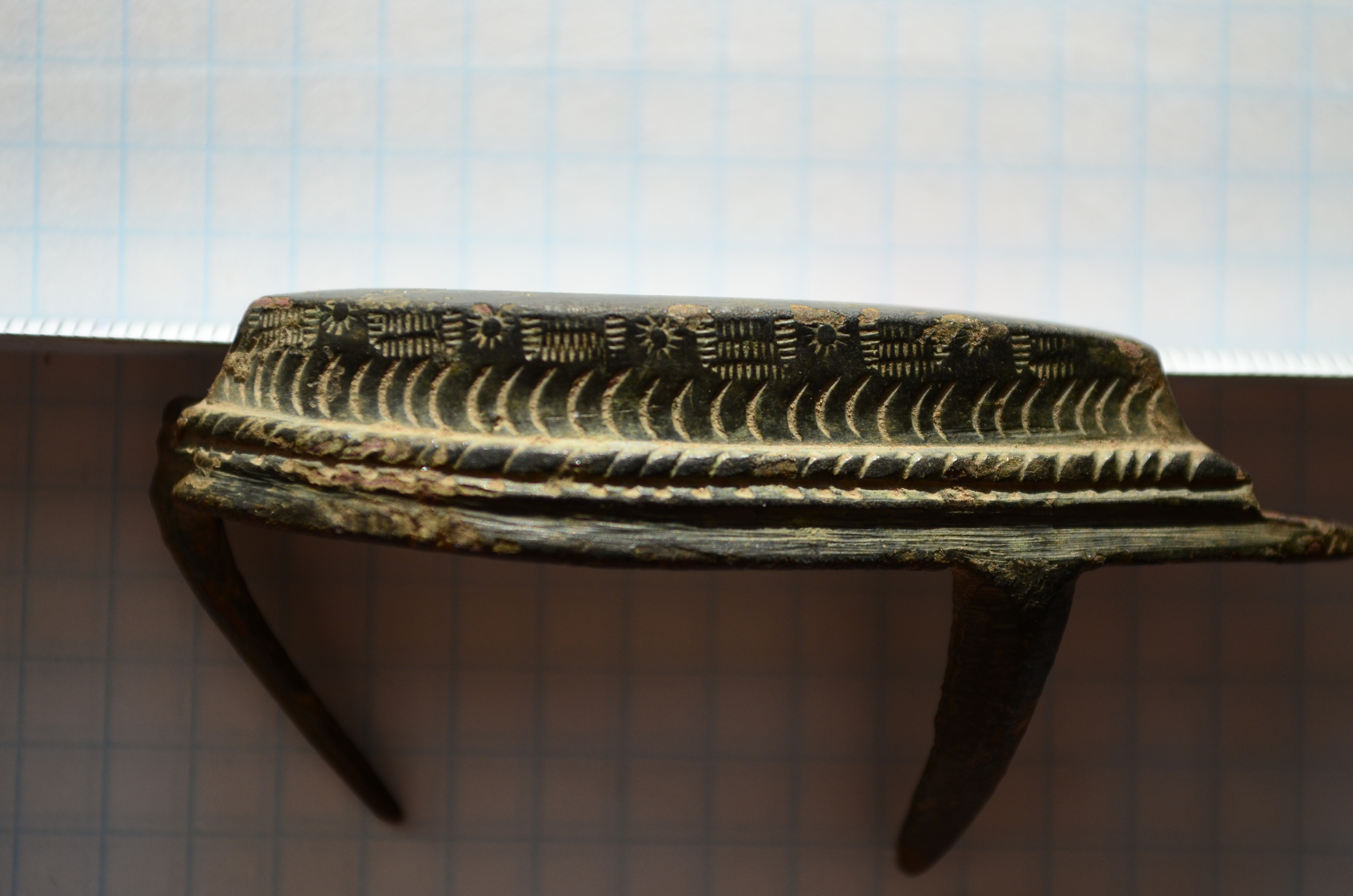 QUOTE(Алконост @ Mar 13 2015, 16:06) Прошу определить принадлежность и датировку двух фрагментов (с солярной символикой?). Место находки - Калужская область, распашное поле. ![]() ![]() первый - часть обувной подковы -------------------- пою танцую на свадьбах