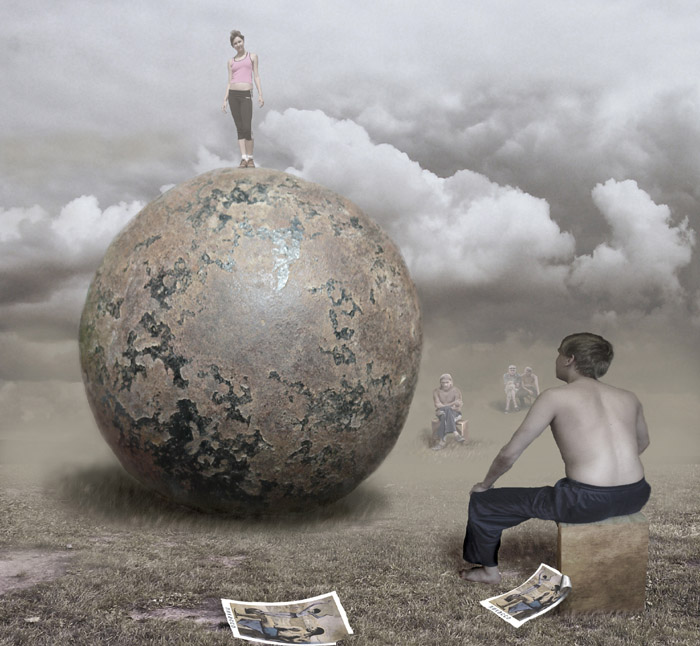 QUOTE(Пушкарь @ Mar 23 2015, 15:05) А можете рассказать как Пикассо делали? Это было давно, теперь и не помню всё. Сначала фон подобрал, потом вставил шар. Шар кстати это одна сторона небольшой гантели у которой по бокам два шарика. Потов вклеел персонажей и последнее взял картину Пикассо и исказил и скрутил её и тоже вклеел. Примерно так. QUOTE(Siniy Borod @ Mar 23 2015, 23:02) Покритиковать можно? Если можно - полный диссонанс между вклеенными персонажами и текстурированным фоном... (по девочке на шаре) Критика приветствуется )))) -------------------- Ушёл в себя и заблудился...