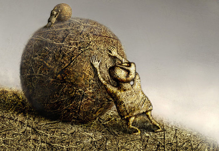 Названия работ по порядку: 1. Бесконечное заседание 2. Воспоминание о Пикассо 3. Сизиф и его ученик Вложенные эскизы изображений -------------------- Ушёл в себя и заблудился...
