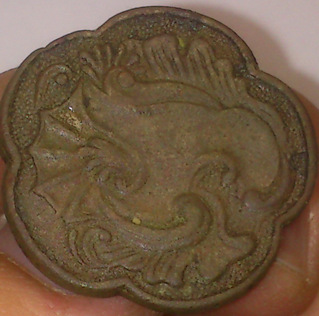 QUOTE(Тацинский @ May 17 2015, 10:10) Я думаю какой то цветок. Обратку тоже надо выставлять. Обратка ровная поверхность с припаянным оловом колечком, думал не интересна сия деталь поэтому не стал фоткать... |