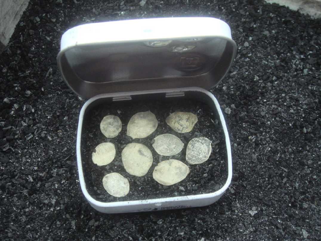 Ну конечно! Все монеты должны быть окружены углеродом. Применять нужно древесный чистый уголь для шашлыка, просеянный через дуршлаг.
