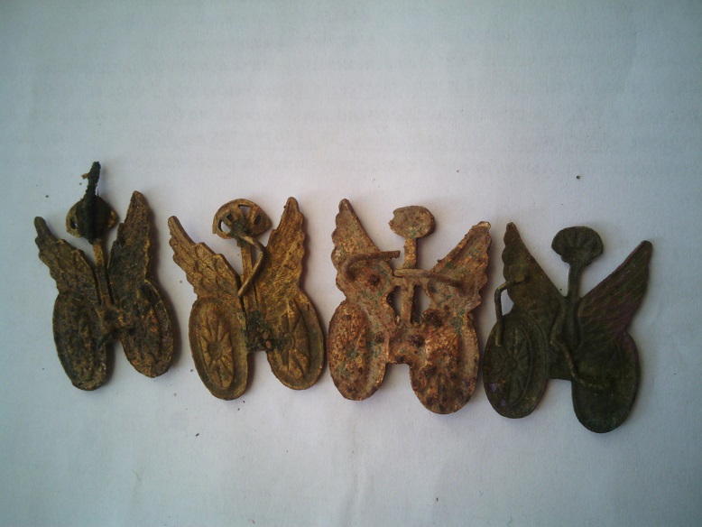Выкопал из одного шурфа с помойкой 4 знака автомобилистов РИА. Но они из разной толщины металла сделаны и немного отличаются по внешнему виду.