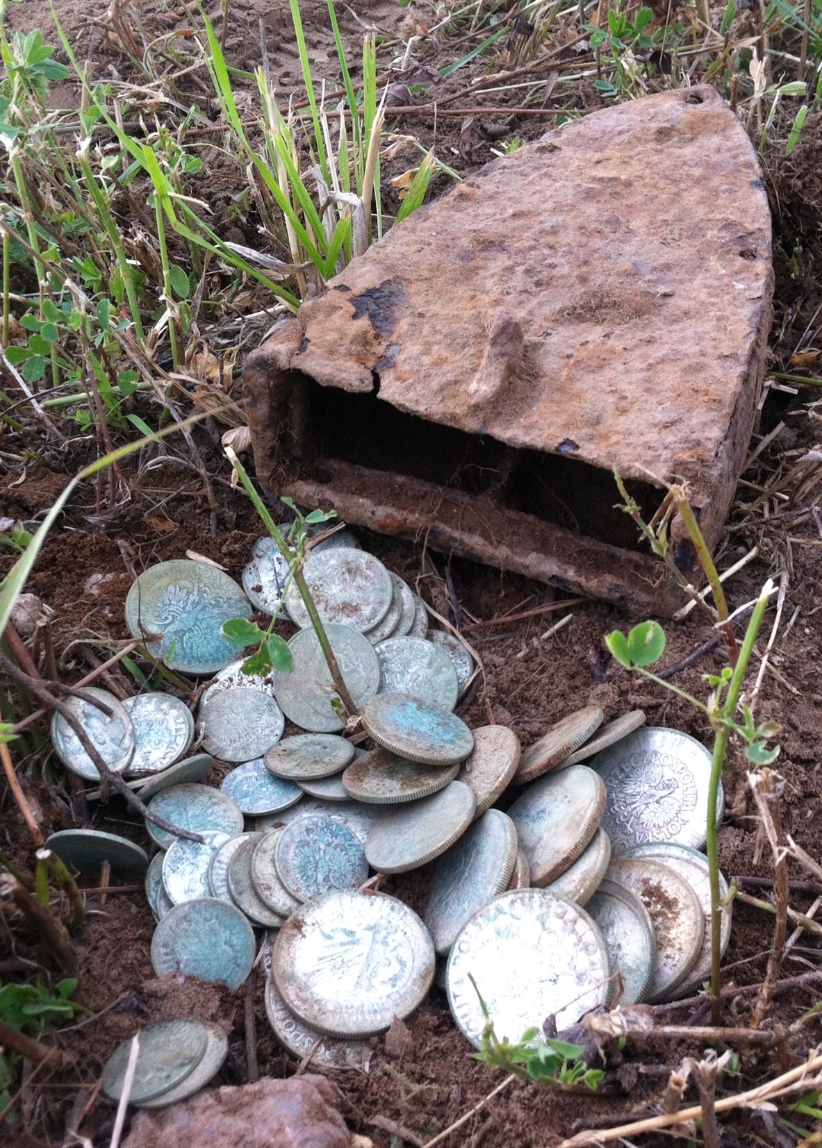 QUOTE(Петрович @ Jul 29 2015, 22:47) Здравствуйте, коллеги! Пишу не для того, чтоб похвастаться, а чтоб предостеречь вас от легкомысленных поступков и чтоб сообщить о том, как прячутся клады, мимо которых мы легко порой проходим. Итак, предистория. Пару лет назад нашли мы с женой распашку серебрянных монет. Вернее, зацепил её я, а добирали уже вместе. Место было битое перебитое, а распашка была всего в 20 метрах от выхоженной площадки. Ну, нашли и ладно. Приехали на слующий год после перепашки, нашли всего пару монет и решили забить на это место. Но вот сегодня, кружили с женой по этому району и случайно проезжали мимо этого поля. Кругом поля ещё не убираются, а тут смотрим, трава покошена и очень низко, аккуратно. Говорю, давай заедем, походим чуток, всё равно везде облом сегодня, да и вечер уже. Жена нехотя согласилась и ещё задаёт мне глупые вопросы, типа- скорее всего мы тогда здесь только часть клада подняли, интересно- где же остальное? (Сам думаю- ну что за тупые вопросы)Я ей - ну чего гадать? Пошли уже искать! Вышли, ходим- пусто. Я решил пойти чуток в строну, а жена упорно крутится на месте распашки, копает всё железо, в надежде найти под ним хоть одну монетку. Слышу, по рации она мне говорит: - Нашла утюг! Почти сверху лежал. Я- красивый? Она- да нет, без ручки, не очень страрый. Я- а, помню, я его в том году находил там и бросил. Выкидывай, это довоенный утюг- фигня! Она- Ладно. Смотрю, присела и ковыряется с этим утюгом. Я ей по рации- да брось его, нафиг он тебе нужен! Она-( загадочно так говорит) - а в нём монетки! Я- Какие нах монетки?( а сам уже чую, ОН!) Иду к ней и точно, в утюге, с торца- отверстие и оттуда вперемешку с землёй торчат монеты. Победило таки женское любопытство! Нет бы выкинуть кусок железяки, так ей любопытно было в нём поковыряться. Поковырялась! Короче, если суждено поднять клад, то это неизбежно случится. Эх Петрович!, Но как говорится, не когда не знаешь где найдешь. А так, конечно же молодцы! Удачи в дальнейшем! Жене респект! Сообщение отредактировано М.А.М.-сибиряк: Jul 30 2015, 00:02 -------------------- Внимание!