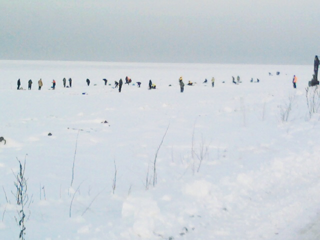 Сегодня на Шепелевском озере (80 км от Питера) на первом льду замечены 10 рыбаков. Ходят спокойно по всему озеру, клюёт мелкий окушок вдоль берега.