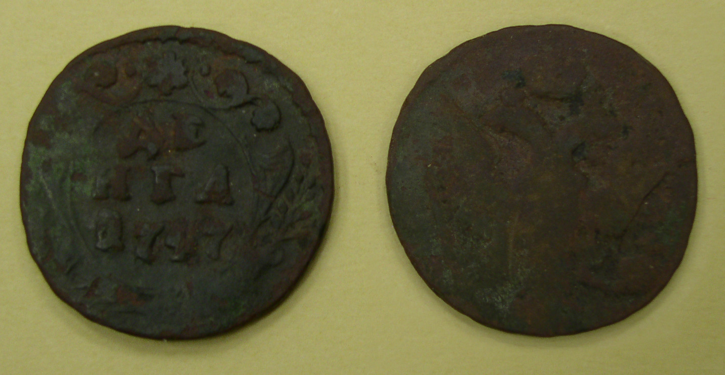 Вы своей находкой ответили на вопрос, который уже вызвал на этом форуме живое обсуждение. Ранее была обнаружена денга 1747 года без черты. Я высказался в защиту мнения тех, кто считал монету редкой разновидностью. Теперь я убедился в своей правоте. Несомненно, даже приняв во внимание подгравировки четверки в дате и другие различия, что реверсы обеих монет происходят от одного маточника. Прилагаю фото обеих монет для сравнения. Также привожу ссылки на ранее обсуждавшуюся тему и тему в разделе «Аукцион», где монета была продана за 720 рублей. После помещения разновидности в каталоги она, видимо, будет стоить дороже.