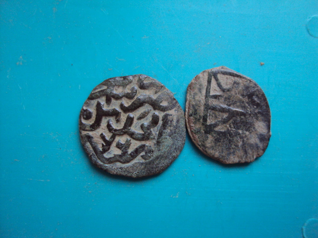 Обе монеты анонимные пулы времени правления хана Менгу -- Тимура. Чекан Крыма. Не датированы. "Кырк сигез -- бер ярмак". |