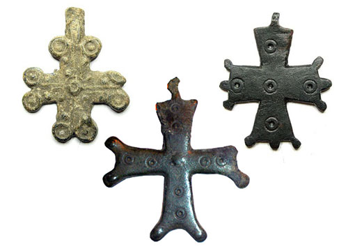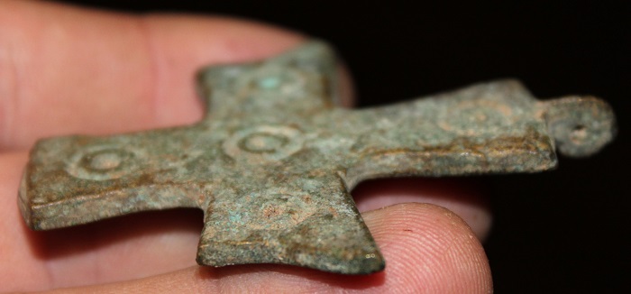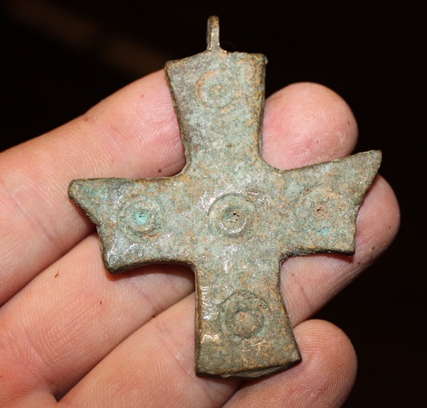 Порылся на просторах интернета. Похож на византийца XI-XIII веков. 5 колец, так изображали 5 ран Христа. хотя это только предположение. Похожие узоры встречаются и на амулетах - топориках КР.