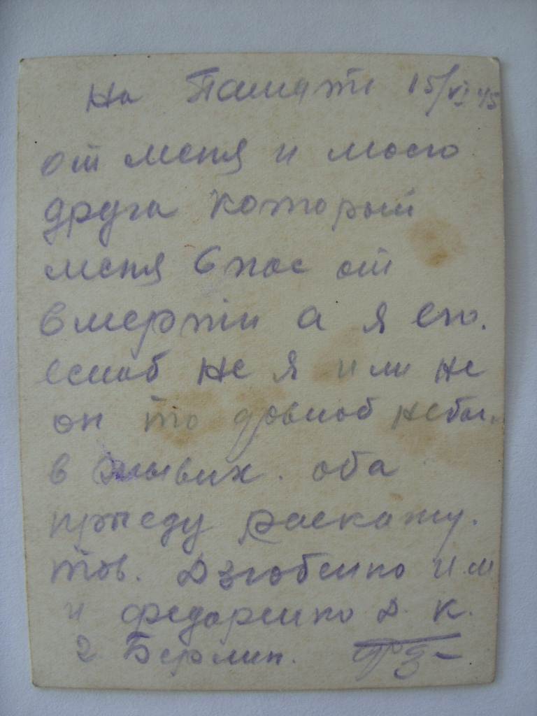 Мой дед, Карандашев Дмитрий Алексеевич, 1900 г.р., рядовой взвода пешей разведки. Призван в ноябре 1941, закончил войну в Берлине.