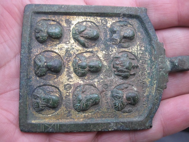 Мне нужны фото с обеих сторон на белом фоне - качественные, крупные. Покупателям не помешает видеть и фото ушка сбоку. А если найдётся добрая душа, владеющая компьютерной магией и склеит мне лицевую и обратную стороны (после появления новых фотографий), то предмет займёт достойное место в Каталоге. По датировке позволю себе высказаться так: 13-14. -------------------- Лучше обнаружить в яблоке червяка, чем его половину...