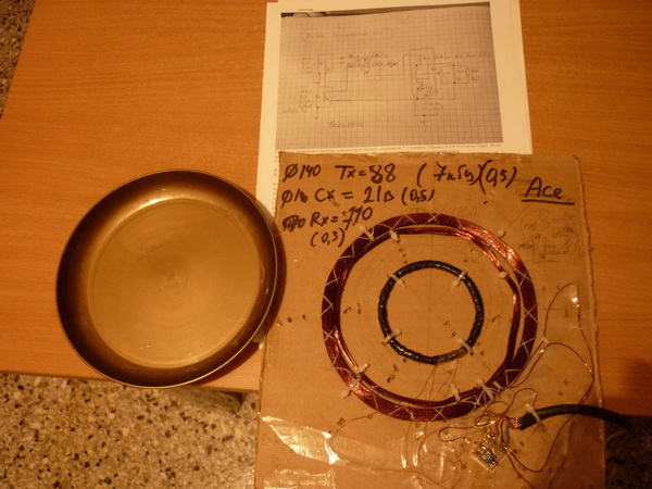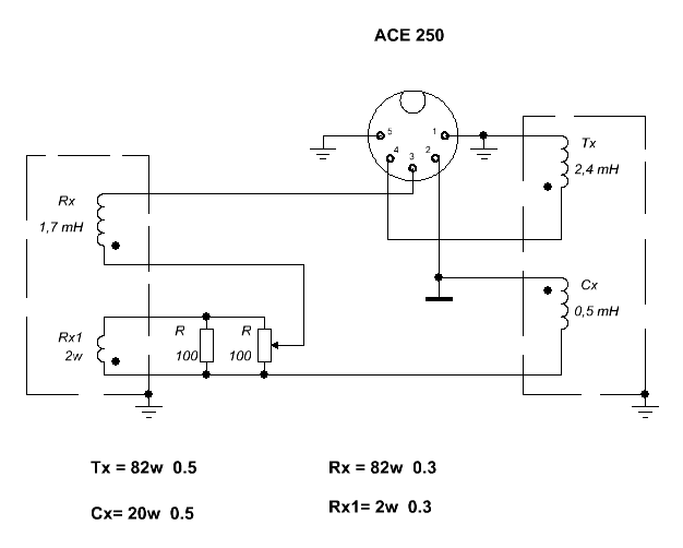 На форуме достаточно владельцев аппаратов фирмы Гаррет. АСЕ150 и АСЕ250 имеют одинаковые катушки. Схема катушки кольцо. Предающая Тх работает на 6.6 -7.2кГц. Приемная Rx нерезонансная.