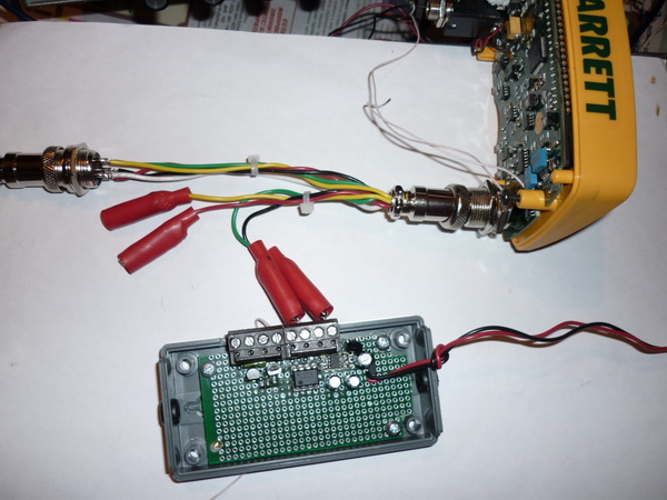 Чтобы не разбирать прибор между катушкой и МД подключаем переходник. К контактам 3-2 (Rx) подключаем усилитель и наблюдаем сигнал. На фото 1 - катушка несбалансирована. Уменьшая количество витков катушки Сх добиваемся формы сигнала как на фото 4. Катушка почти сбалансирована, далее подстройка переменником. На фото 5 - катушка настроена. Сообщение отредактировано GSL: Apr 6 2011, 21:12 Вложенные эскизы изображений |