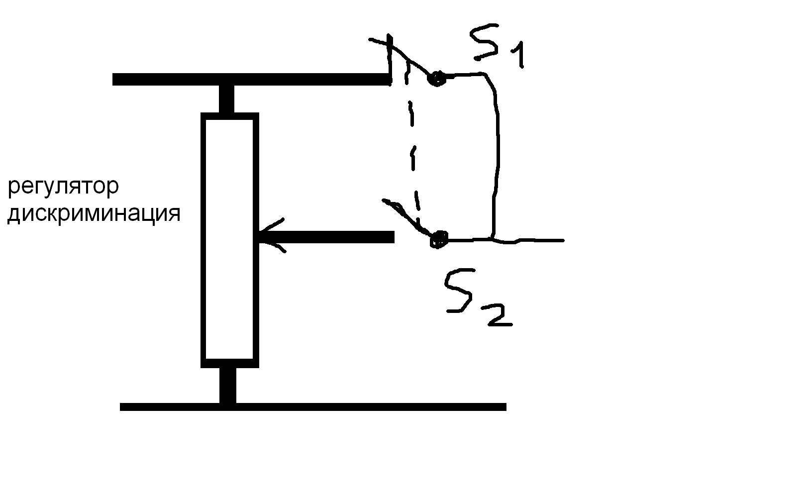 Ещё при переделке возникла мысля сделать переключатель аналогично теджоновскому(схема приложена ниже).В нормальном положении (ключ s1 замкнут , а s2 разомкнут)прибор работает в режиме всех металлов имея максимальную чувствительность, если необходимо проверить объект то переключателем размыкаем ключ s1 и включаем ключ s2 тем самым прибор переходит в режим дискриминации который вы устанавливаете регулировкой переменного резистора.Себестоимость такой переделки около 50 рублей(вообщем это средняя цена переключателя без фиксации).