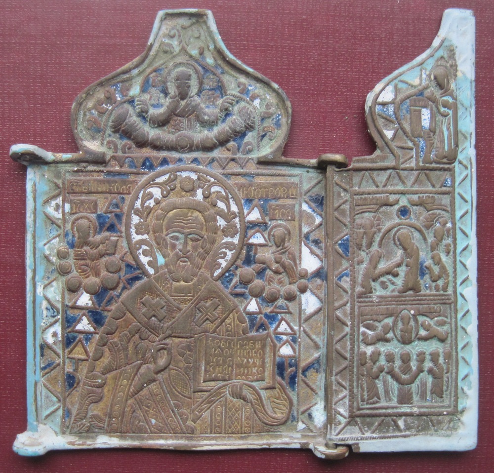 Первый складень помыть от мела и фото покрупней можете сделать? Для каталога меднолита. По времени начало 19в , 00-10гг. Основа Выг с.18, а вот где отлит хз? До сих пор не разобрались. То ли позднее поморье, то ли ранняя Преображенка.