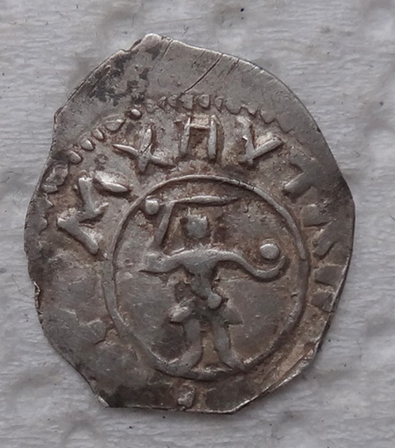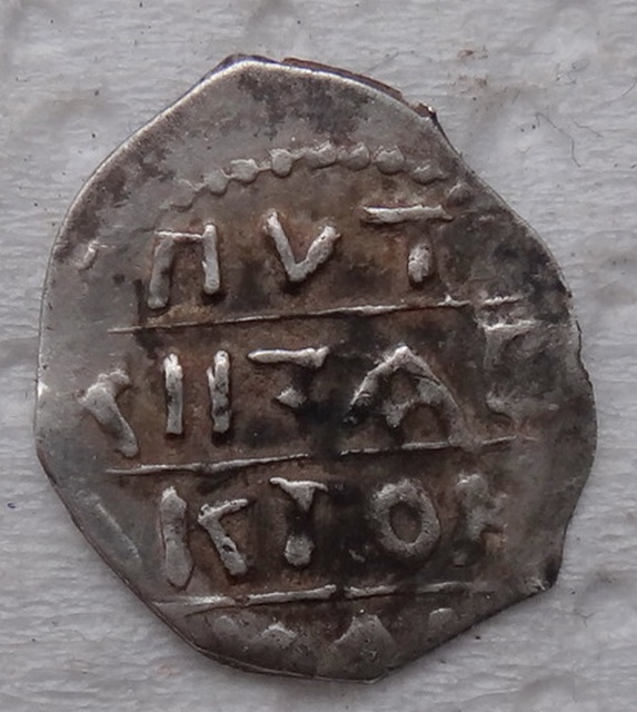 Тверская деньга Михаила Борисовича - Воин с мечом и шаром.
