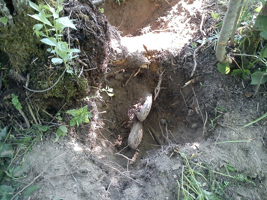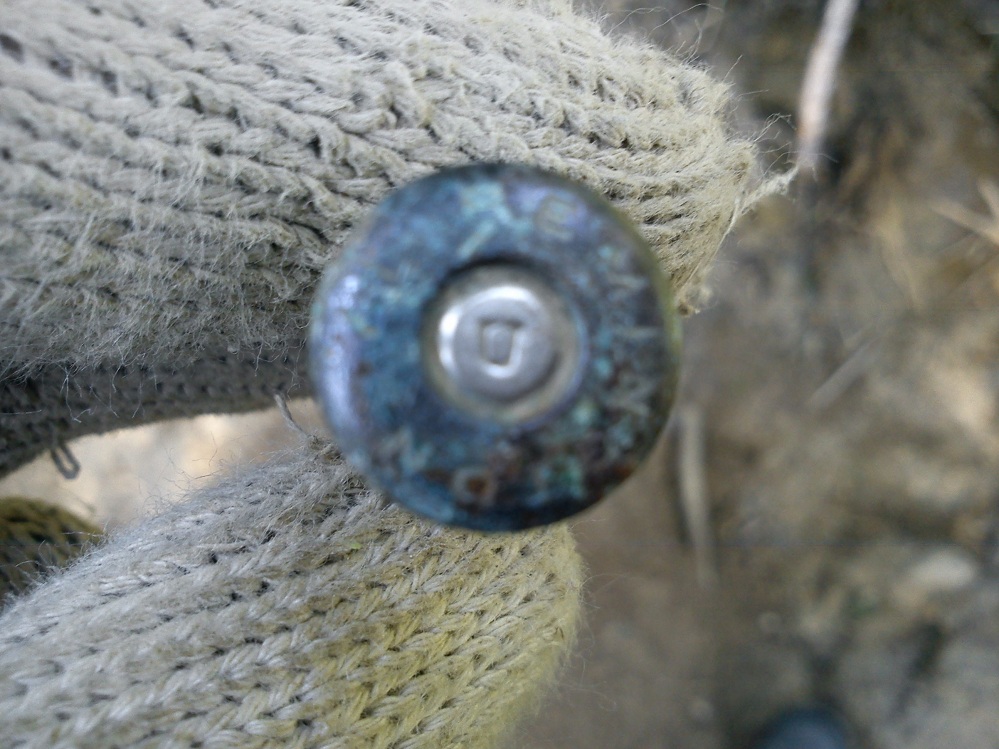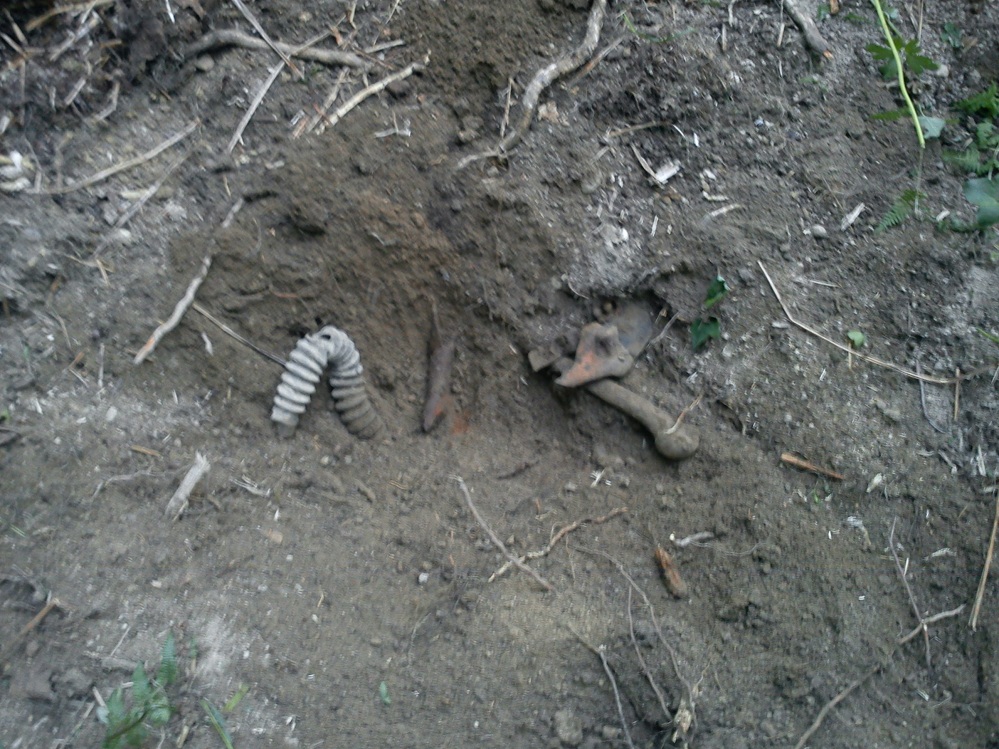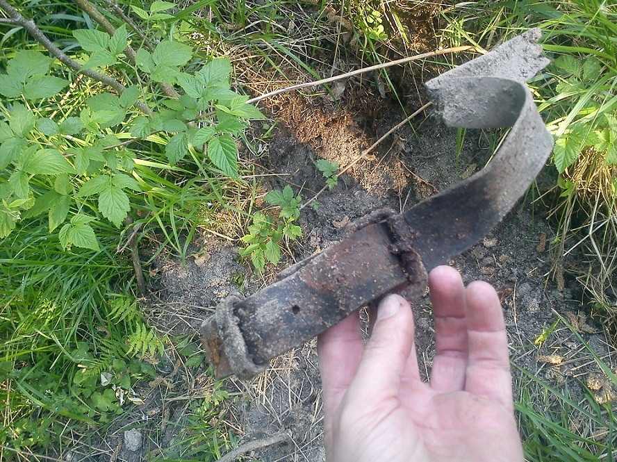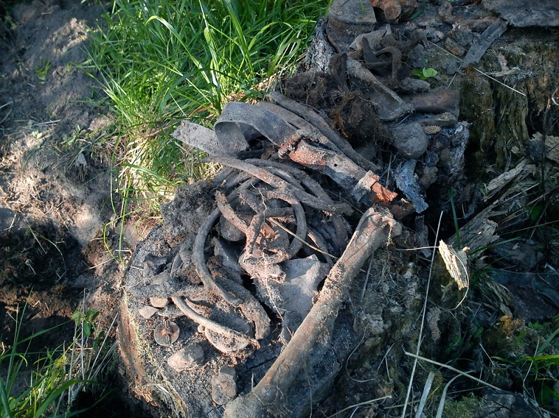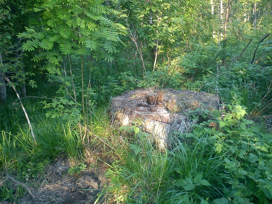 Находка случилась, здесь, у некогда росшего дерева, за стволом которого, была позиция нашего бойца, здесь же он и погиб(забегая вперед скажу, этот боец и следующие найденные огонь вели в направлении дороги)