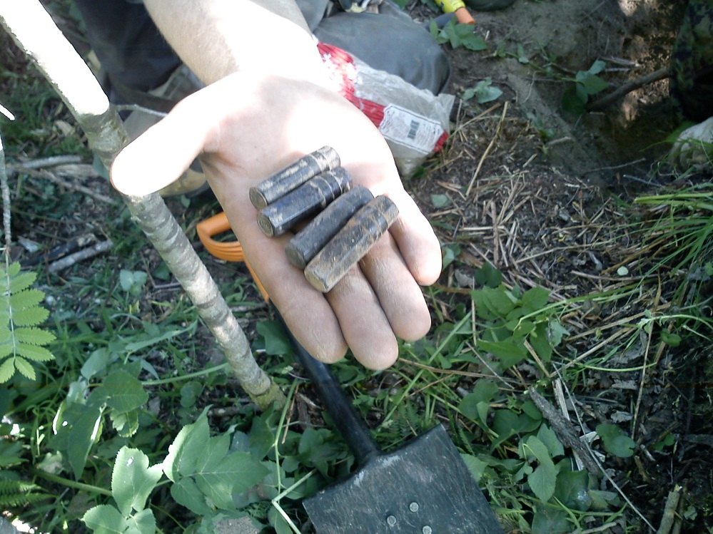 При более детальном обследовании местности, у дороги, был найден гансовский настрел. Гильзы и патроны(в исполнении Ремингтон) от наших Мосинок, начали попадаться в 50 метрах от немецкого настрела.