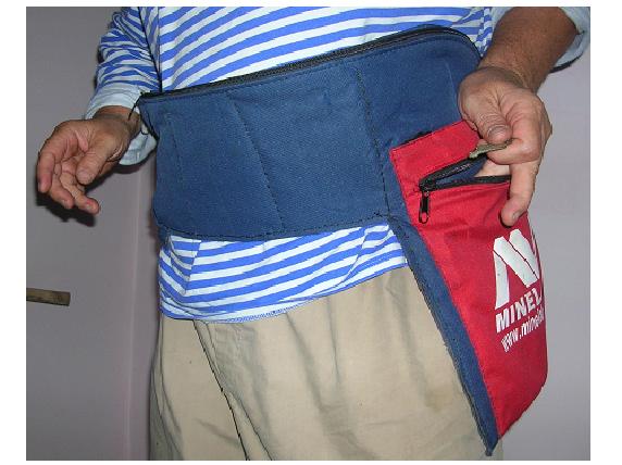В качестве сумки для находок пользуюсь поясным органаёзером для инструментов, в моём случае ф."ЗУБР". Видел аналогичные девайсы др. фирм типа "BLACK & DECKER".