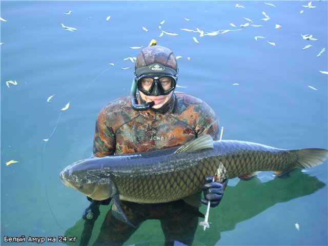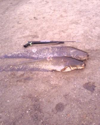 Сегодня в Воронеже выпал первый снег! Очень удачно я вчера успел переобуться в зимнюю резину. На шиномонтаже со мной произошёл интересный случай. На стойке оформляют акт выполненных работ, и краем глаза вижу, что лежит несколько журналов МПО. Я спрашиваю, мол у вас кто-то занимается подводной охотой? На что мне в надменной и ехидной манере было сказано, что у них двое сотрудников являются профессиональными подводными охотниками! Мне стало интересно, и я стал расспрашивать дальше. Мой собеседник - громила под два метра явно хотел по-выделываться перед своими молоденькими стройненькими сотрудницами. Он с каким-то ехидным наездом сказал что они (его подвохи-профи) уже закрыли сезон? На это я парировал, что профессиональные охотники только его открывают! Видимо, я это сказал зря! На меня обрушилась целая тирада слов, из которых я был сделан дилетантом, недоумком, выскочкой и вообще совершенно не далёким человеком, который насмотрелся по ТВ передач и считает, что много чего знает в подводной охоте. Меня дружненько так приподняли на смех, верзила был собою очень доволен и горд, ведь он же меня сделал! Явно чувствовалось, что он ждал моего ответа и хотел продолжения шоу. Я стоял молча, набрав в лёгкие воздух, и не проронил ни слова. Девчоночки смотрели на меня и улыбались. А можно мне взглянуть на один журнал? - и пальцем показал на № 4 за прошлый год. Открыв нужную страницу и периодически тыча пальцем в своё фото с сомом, словно дятел, я начал говорить. Дословно не помню, но смысл был таков, что я очень благодарен за хороший сервис и быструю качественную работу персонала шиномонтажа, сказал, что буду их рекомендовать своим знакомым, и ещё, что хоть я ничего не смыслю в шиномонтажке, но в подводной охоте я кое-что понимаю... Другой парнишка, сравнил моё лицо с фото в журнале, и спросил: "Это вы?" Да! - ответил я, - это моя фотография и моя статья... Наступила тишина. Я не стал дальше позорить громилу, а, попрощавшись с персоналом, направился к выходу. "Да, и не забудьте передать от меня привет своим профессиональным подводным охотникам!" - бросил я напоследок. Закрывая за собой дверь, я слышал, как стали смеяться над верзилой, он стоял растерянный, при растерянный. Гнев моей ярости накрыл меня, словно снежной лавиной, уже в машине. Я возвращался домой и всё никак не мог успокоиться после общения с этим здоровяком, не отличающимся ни умом, ни фантазией, ни сообразительностью. При желании я бы мог рассказать ему много чего о своём увлечении, но метать бисер перед двухметровым поросёнком не хотелось. Вот буквально несколько дней назад я охотился с двумя стволами… В тот день я решил полазить с двумя ружьями: Cressi 55 и метровый арбалет Riffe. Мой выбор определял тот факт, что стрелять по судакам и карасям с Riffe не очень скажем так удобно. Да плюс к тому, если встретится сом... лупить его с дерева - можно погнуть-поломать стрелу. Вот так я и плавал с двумя ружами: Riffe в правой руке, потом под левой подмышкой. Ныряю за судаком, откладыва Riffe в сторону и аккуратно с пневмата беру судака. По карасям тоже лупил с Cressi. На тот момент, когда я встретил сома, у меня было за спиной 5 хороший судаков. Сом попался мне совершенно неожиданно. Он лежал в зелёной траве, весь такой чёрный, чёрный и огромный; вода была прозрачная при прозрачная, солнце светило ярко, при ярко! И он такой огромный лежит в п