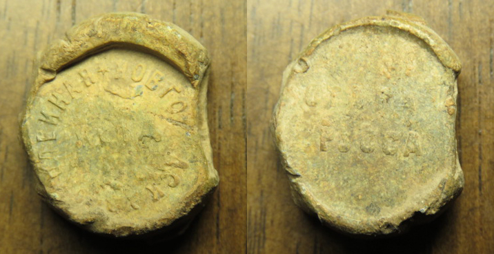 Любопытная пломба, давно лежавшая в коробке и ждавшая, когда станет объектом внимания, ставит под сомнение мои изначальные выводы. В частности, я предполагал, что тип 9 более поздний. Но эта пломба 9 типа с обозначением станции Чудово была перебита, то есть использована вторично, штемпелями 5 типа с надписью НУЖД и названием станции Новгородъ. Вообще, пломбу-"перечекан" вижу впервые.