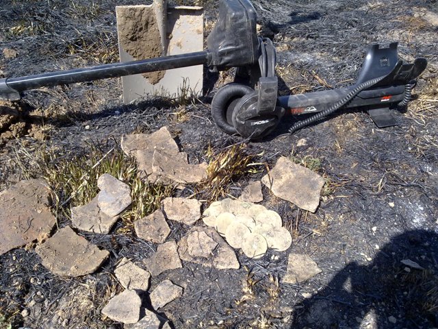 Видимо на этом месте когда то и был клад,но находчику досталось только его после кого то добрать.Ведь и осколки горшка как видно на снимке, присутствовали.