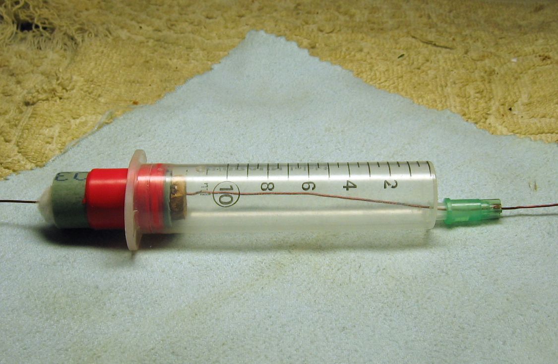 Вот, может кому понадобится, приспособа для покрлытия провода эпоксидкой (лаком) из подручных средств. Проверено, работает отлично. В отличии от классической "ванночки" позволяет работать под любым углом, по окончании можно не мыть, а просто выбросить шприц и взять новый. Я мою только насадку - сопло.